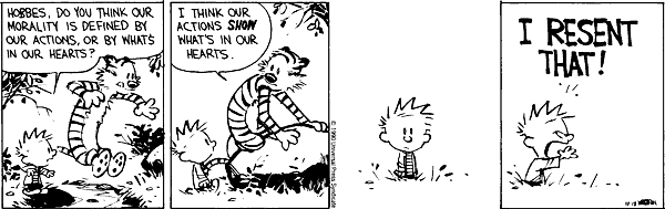 I think we all wonder every once in a while whether or not it would be worth it to travel back in time or even if we would if we could. But I think that's what Calvin and Hobbes does for its readers. It was made for those who like to reminisce, those who know they can never go back. Perhaps that is why these comic strips mean so much to me now — because they allow me to exercise impossible thought in a world full of possibilities.