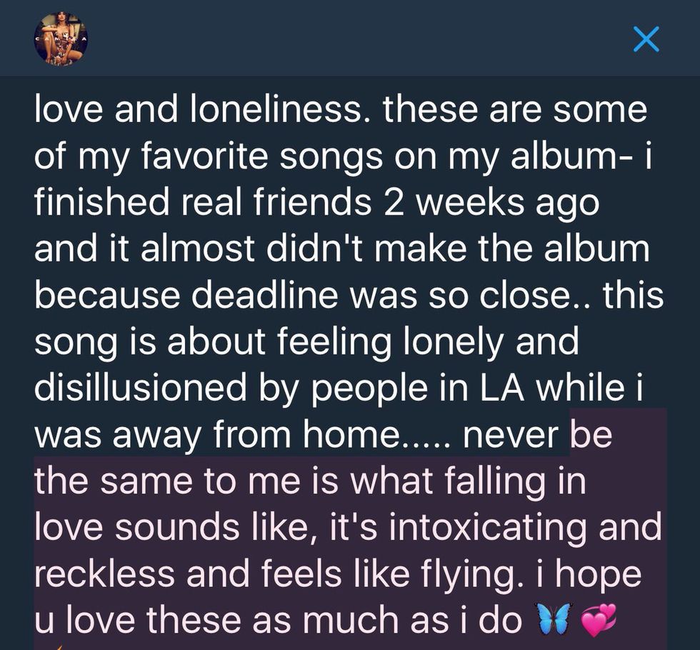 The track even mentions nicotine, heroin, and morphine and we're sure you'll be addicted to this song (and the album) just like the drugs mentioned. Just like "Never Be The Same", the track "Real Friends was released a month before the actual release date of "CAMILA" on December 7th, 2017. I can guarantee you that you will relate to this song as it talks about going through the realization that the people you're surrounding yourself with aren't actually your friends.