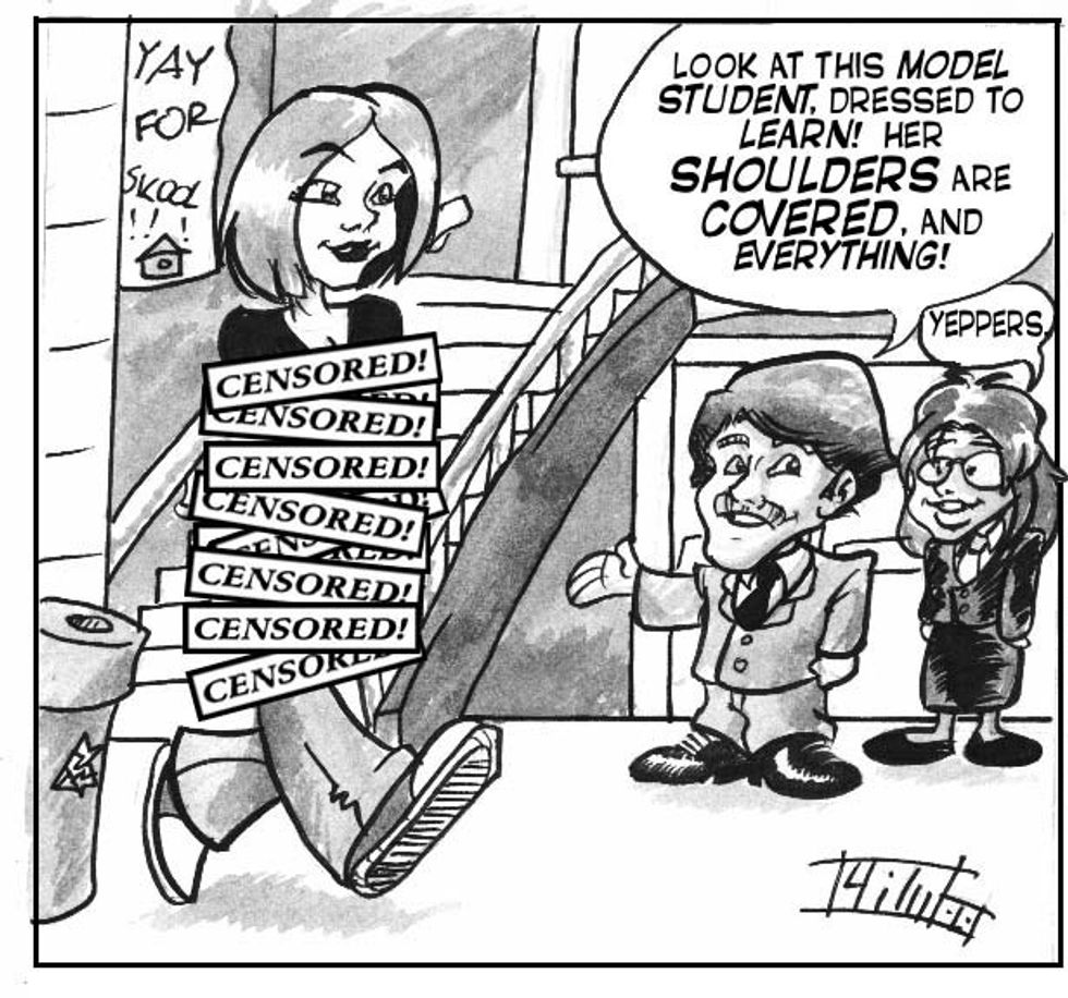 Far from telling students to respect themselves and others, these restrictive standards make the female students responsible for earning the respect of their male counterparts by dressing to avoid attention and make their bodies the perpetrators of bringing conflicts on campus. Our bodies become objects to be contained. Self-expression becomes a nasty excuse for disrupting campus safety.
