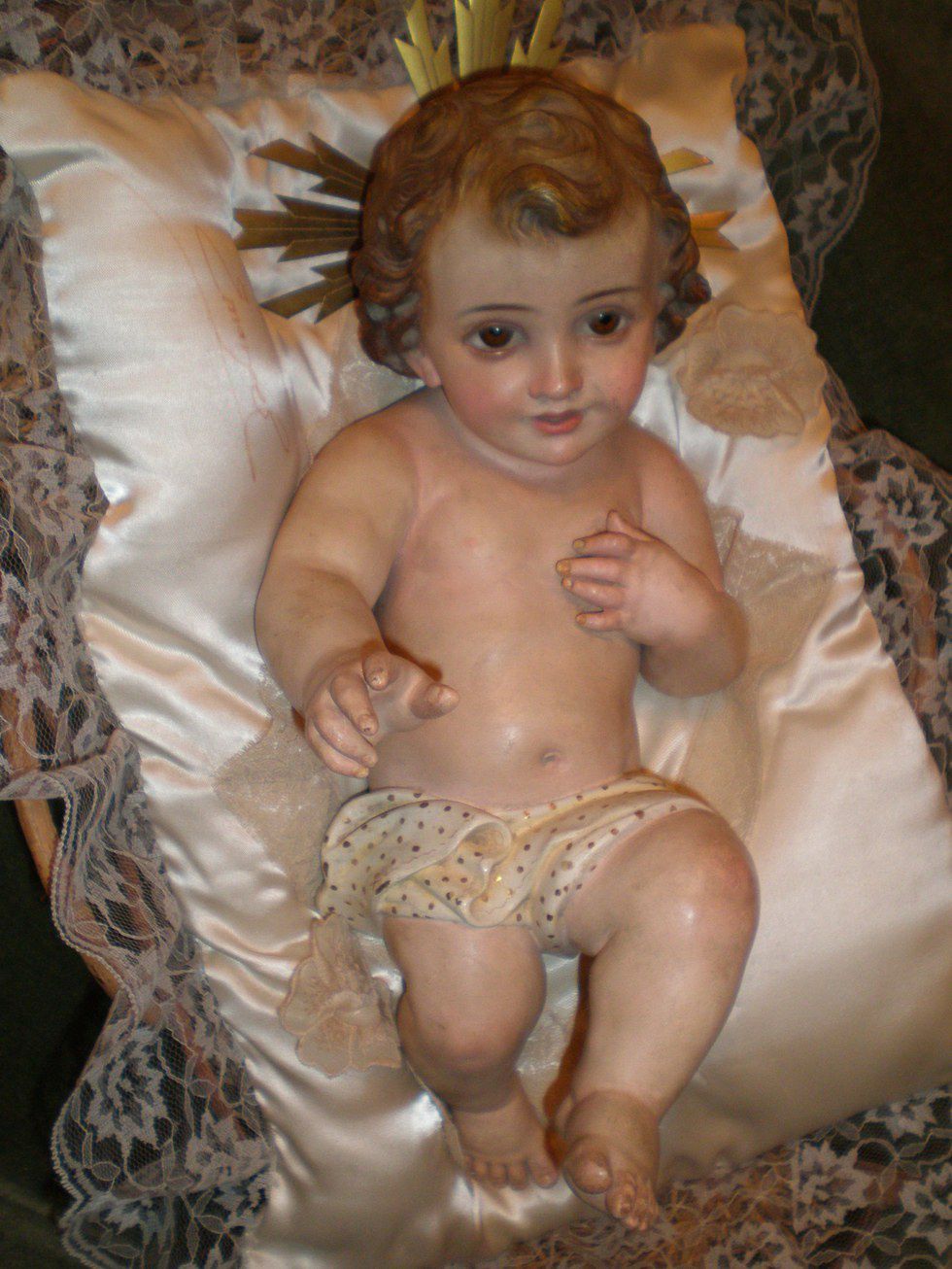 (It is on Feb 2nd when we wake him up from the nativity scene that we put His clothing back on) But after we rock Him the 24th, we all have to kiss him.