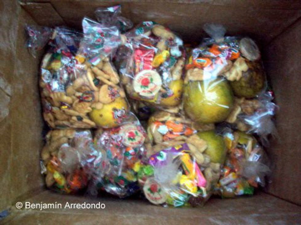 After that, we all pass out our treat bags that each household made. These usually consist of tangerines, guavas, peanuts, animal crackers, chocolates and "colaciones"!