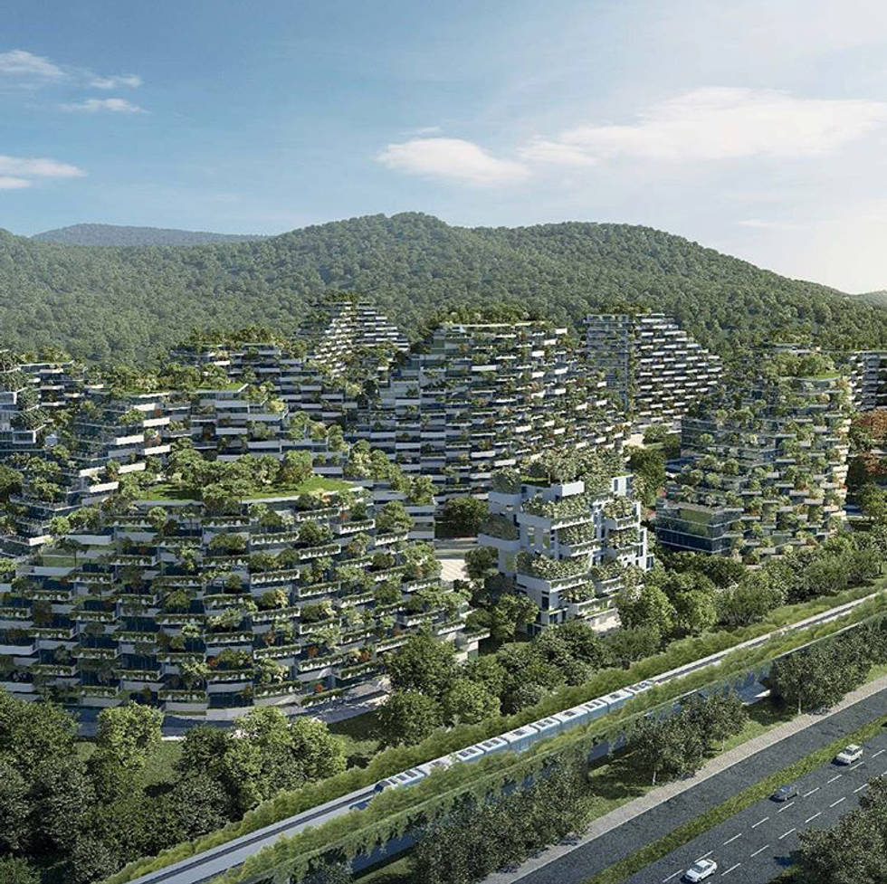 Liuzhou Forest City was designed by the renowned Italian architect Stefano Boeri to be constructed in southern China and completed by 2020. The overall layout of the 324-acre city will have 70 buildings that make up offices, homes, schools and other complexes found in any other city. Boeri's architect firm plans to incorporate 40,000 trees and over one million different plants covering the city.