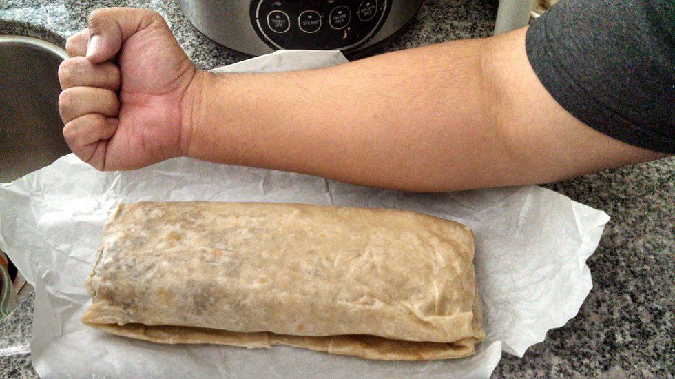 These are not just any regular burritos stuffed with beans that are a few inches long and about as thick as your wrist; our modern taste buds demand head-sized, heavy, and humongous burritos that leave you sick to your stomach after eating one, but still hungry for more!
