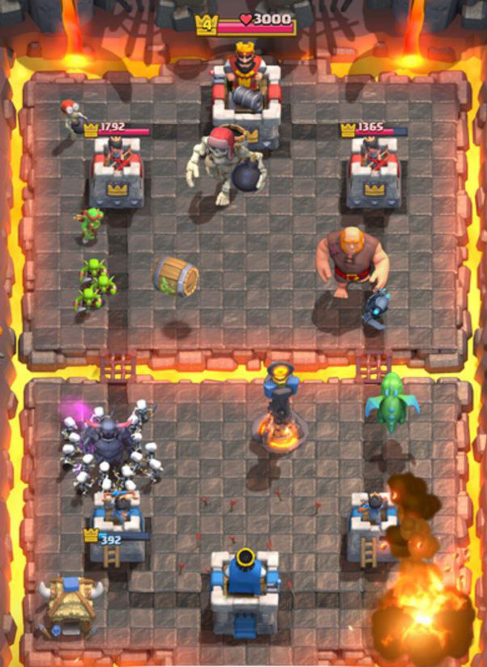 In Clash Royale, regular battles last a maximum of four minutes, there is no troop training time and players do not have personal bases. Instead, much of a player's strength is based on their game level, card levels and of course, strategic skills. Every battle is unique, which makes the game constantly engaging. Similar to Clash of Clans, players can join clans to request for cards, chat with clanmates about strategies, play friendly battles and compete as a clan to earn rewards.
