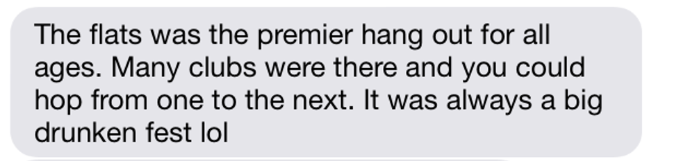 In the early 1990's the Flats as kids now will say was "lit." Many local bars and chain restaurants brought their business to Cleveland because of the high volume of people. I asked my own mother her opinion of the Flats and this was here response: