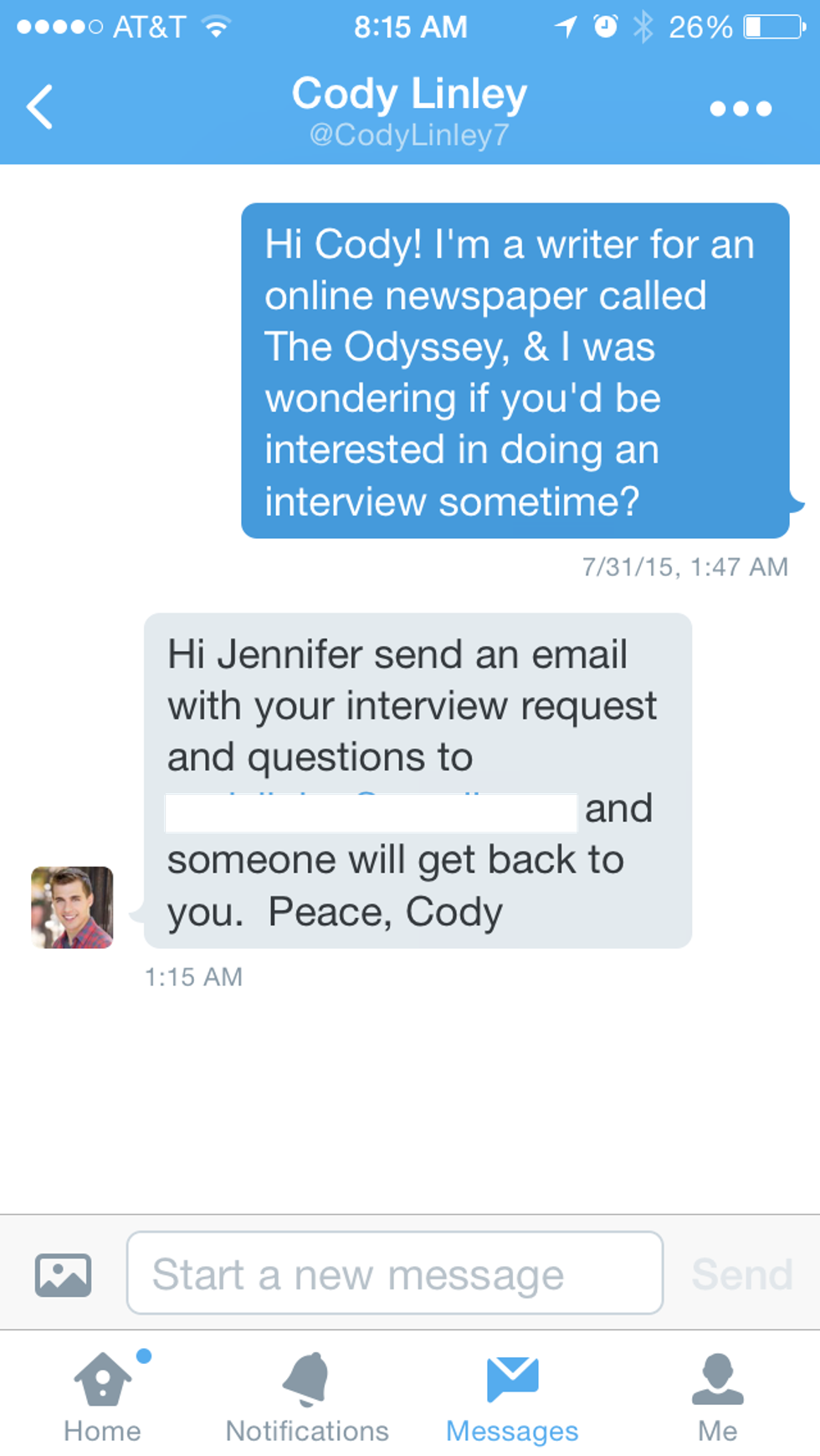 What?! Cody Linley messaged me back?! As I tried to contain my excitement, I wrote up some questions, emailed him, and then the correspondence began. So here it is, everyone: My interview with the one and only Cody Linley.