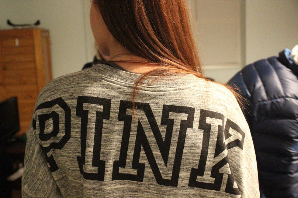 The classic PINK sweater that's not actually pink...misleading but every girl two or more, honestly. This girl in the picture has enough to cloth an entire African family...but hey they're super cute or something...right?