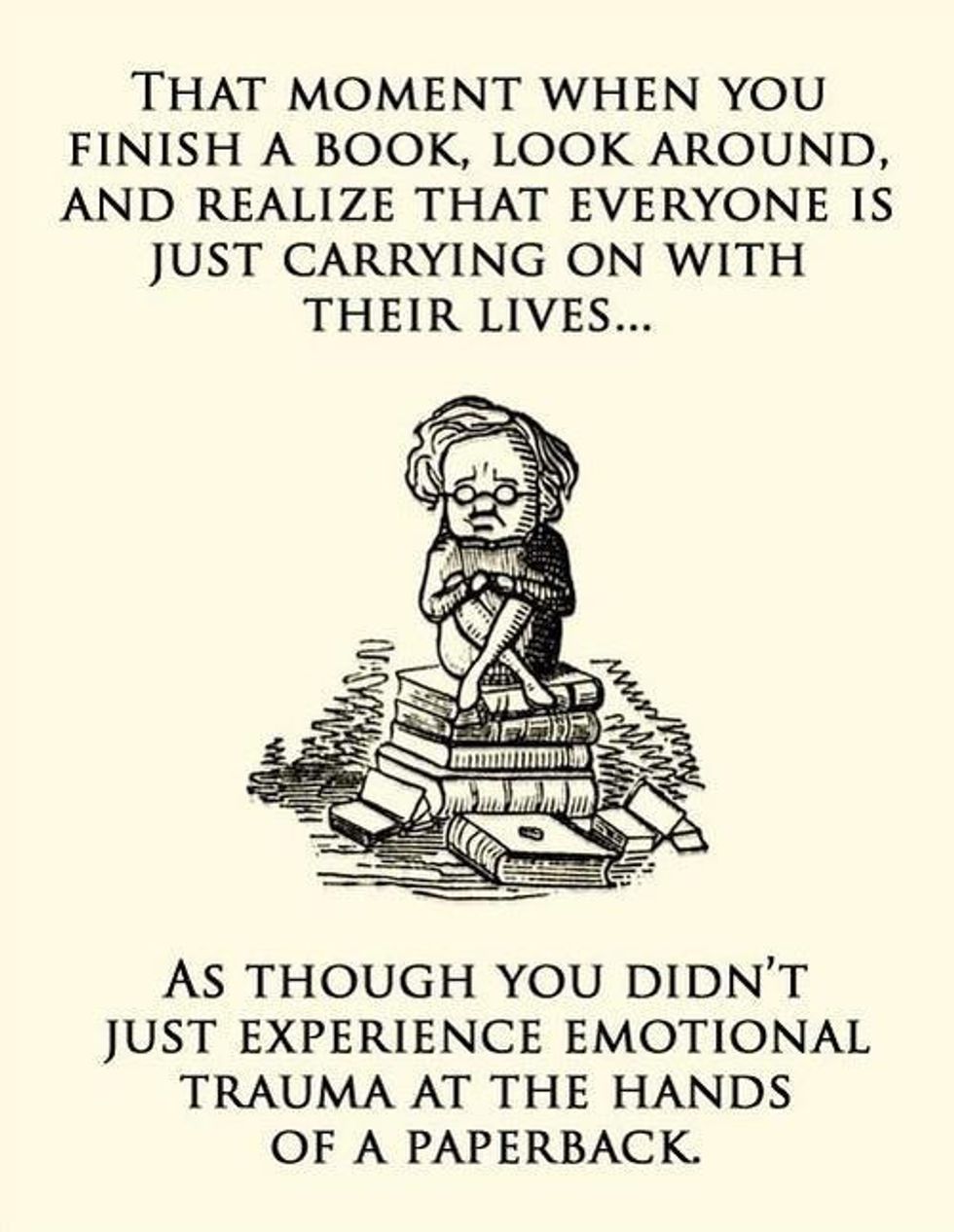 23. There's been more than one occasion when something emotional happened in a book and I've found myself yelling at it for hurting my feelings. In front of other people.