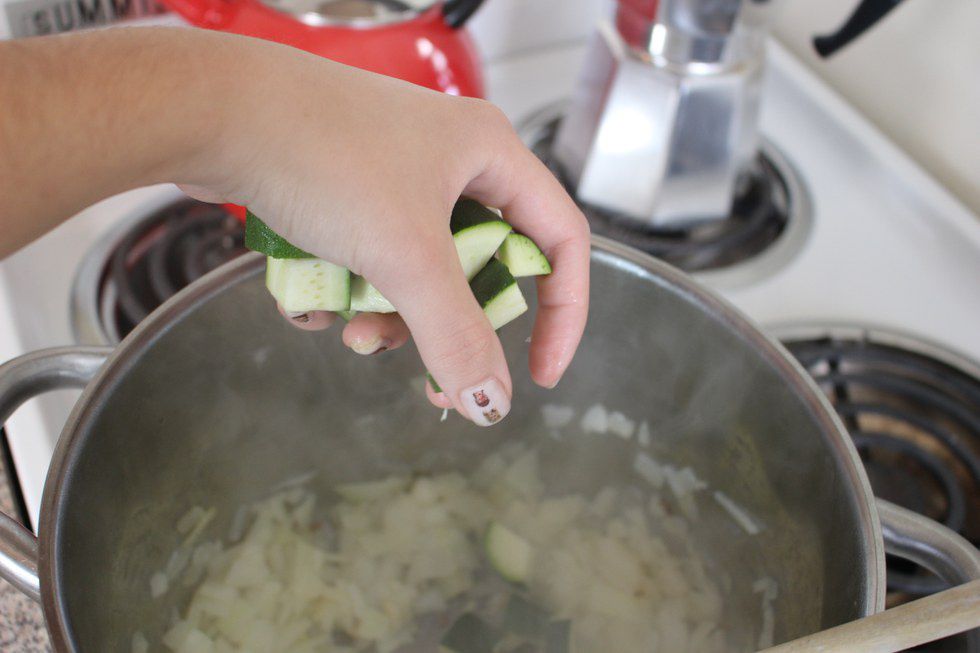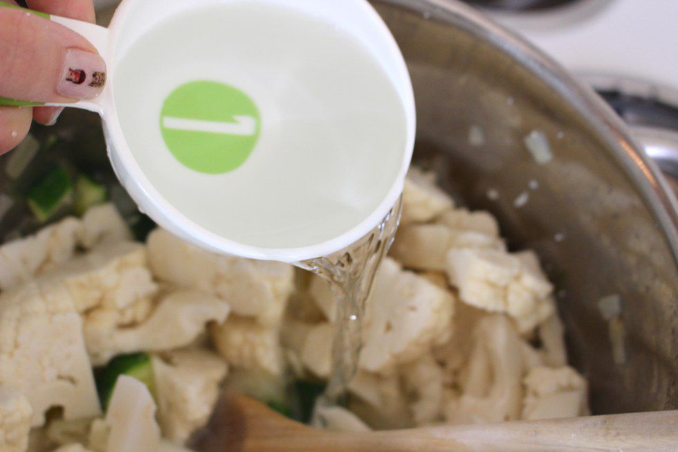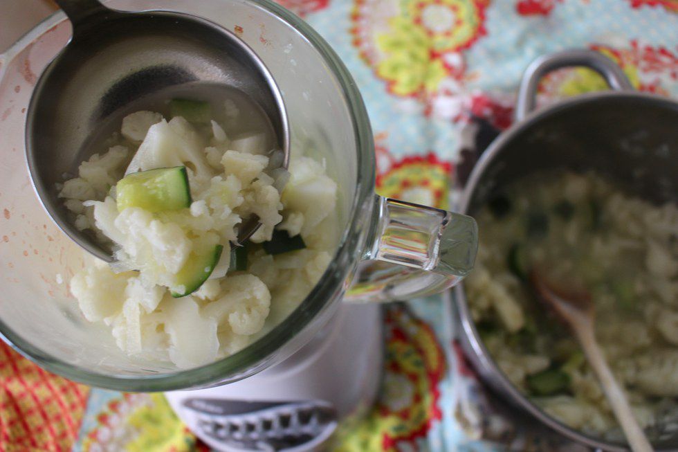Add your zucchinis and cauliflower into the pot and cover with water. Remove from heat once a fork can easily go into the cauliflower.
