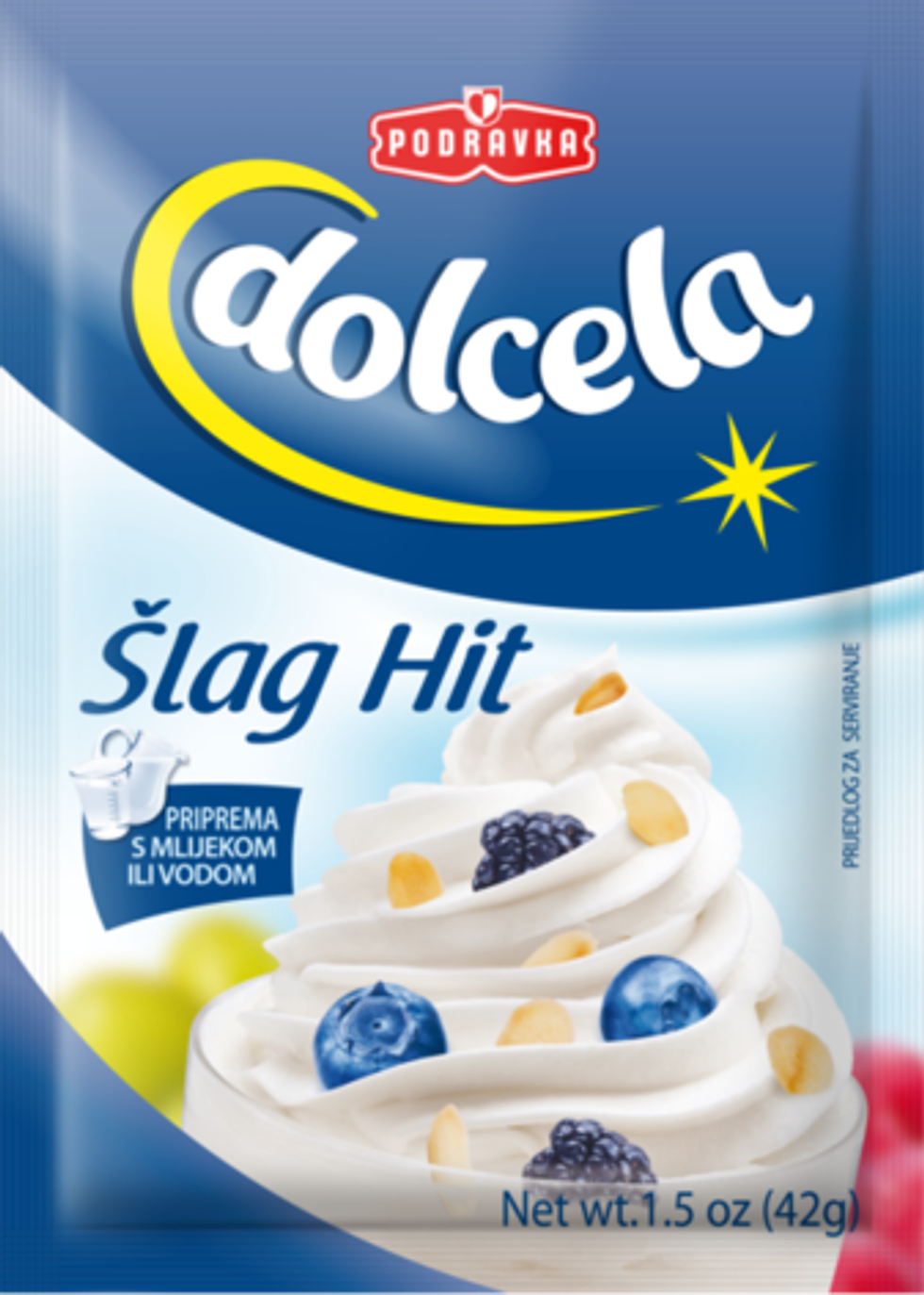 Slag is my favorite!! The packet contains a powder that you combine with milk and whisk by hand or with an electric mixer, and you magically get whipped cream! This is great for topping all of our desserts. You can even put it in coffee or on ice cream and it adds a great touch of sweetness. Definitely a staple in the Croatian kitchen.