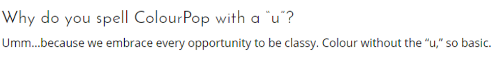 ColourPop is absolutely fantastic; if you want to wait for your shipment. ColourPop is ONLY sold online and they don't offer wholesale. ColourPop is one of the most popular brands in the makeup industry, and the most mysterious. I've googled who owns ColourPop so much that it's the first thing that pops up when I put a "C" in the search line. It automatically has "Who owns colourpop" waiting for me. It's really an addiction, I MUST FIND THE OWNER. They're also just really funny when answering their FAQ questions. So, besides great products, the company has personality, AND IT'S CHEAP FOR ONLINE. And now, THEY OFFER INTERNATIONAL SHIPPING. I might actually cry. This is wonderful. I love this brand so much, I'm just incredibly impatient and like to have my products in my hand as soon as possible.