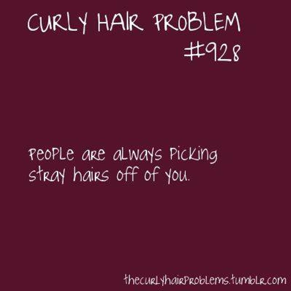 Curly hair = knots. That's the short way to put it so even if your hair isn't "that" curly, you get to always have that treasure chest which is your hair. Fuzz, crumbs, paperclips, wads of paper, and even pens are all among the usual things which easily latch onto curly hair for the ride.