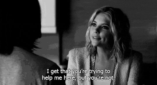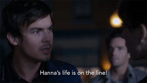 "Aria you went there to investigate! You can't leave just because some love song! You only have 37 minutes till Hanna is dead!"