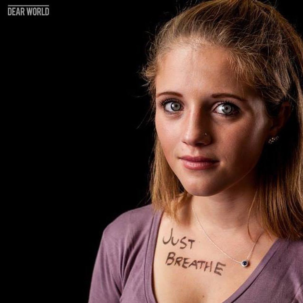 One last story is one of Faith and coping. A wonderful person that I met last year as a freshman and saw literally all the time because we lived in the same building shared her story with me. "Just Breathe" for her means she can think of her faith in God at rough times where it may be hard to breathe or she's feeling anxious and she just breathes. "Breathing is something that is essential to life and to running. God is the reason to that." She is such an amazing person and while her story is short she is sweet and caring. She reminds us all to just breathe sometimes and that's ok.
