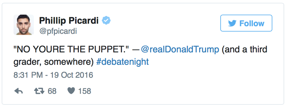 If you missed the third and final presidential debate, don't worry — you didn't miss much! Your time was almost certainly better spent doing literally anything else. There was name-calling, burns, numerous interruptions, bold accusations, and very little thoughtful debate. On the bright side, the debate provided excellent material for the Twitterverse. Here's everything you missed, in a far more condensed and enjoyable format.