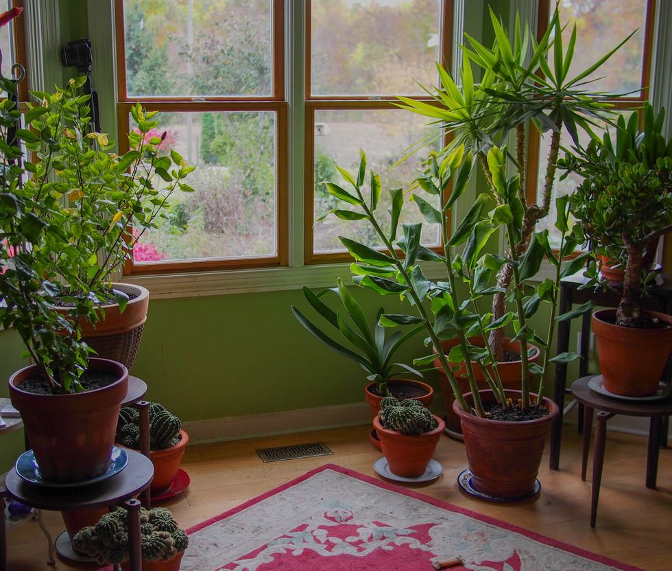 Green up your space! Not only do they add color to your home, but they also provide oxygen while using up the carbon dioxide you're giving off while you talk to it. Yes, you should talk to your plants. It will help curb any loneliness you're experiencing.