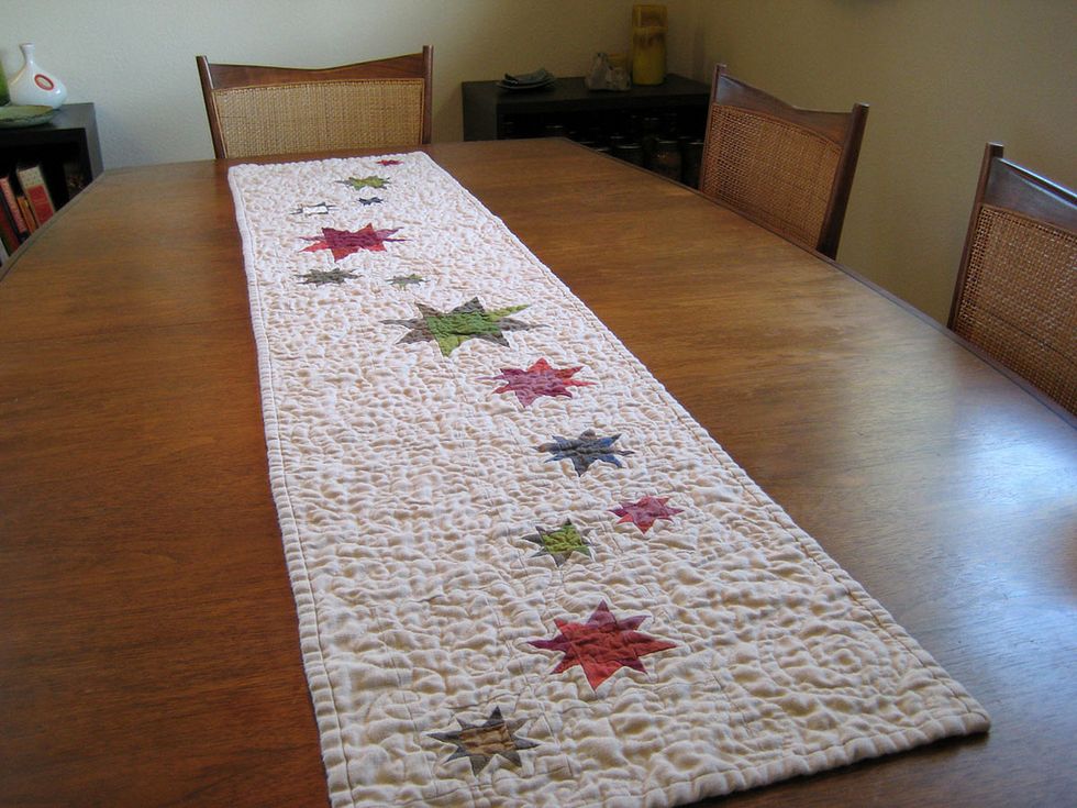 Use heat-resistant fleece instead of batting in the middle to make a quilted table runner and you have a piece of art that functions as a hot pad, too! Go ahead, set your casserole dish right on it without worrying about ruining your table or counter top.