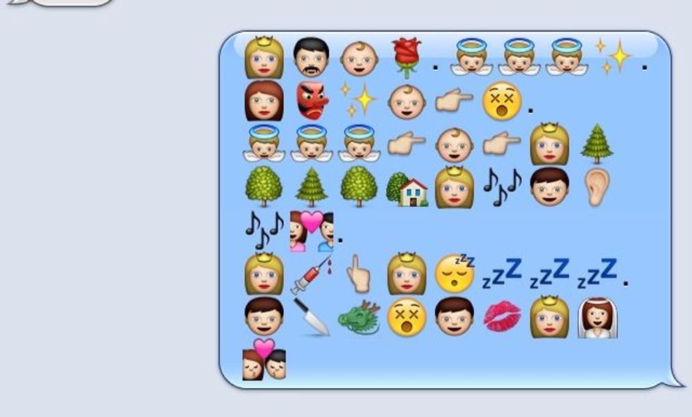 Personally, I don't believe those who say that using emojis instead of text online will destroy culture or make communication meaningless. I don't think the problem of speaking only in emoji is even as widespread as most people think: I'm a tech-savvy college student, and I still (usually) text in complete sentences. My younger sister in high school doesn't share rebus puzzles with her friends. Heck, my mother is more likely to spam emojis to me(mostly hearts and blowing kisses. She's affectionate that way). Granted you can tell stories through emojis(they apparently translated Moby Dick), but they're often a little hard to understand. Off the top of your head, what is this text message saying?: