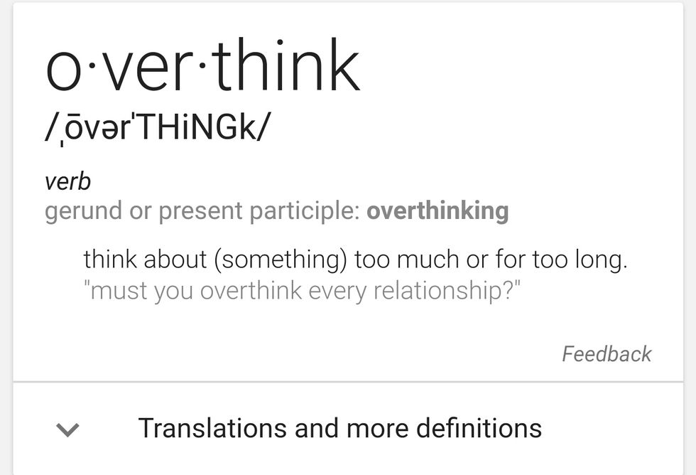 Overthinking is reading your favorite book, but there is not a definitive ending. The possibilities are endless, and yet, you cannot arrive at any end.