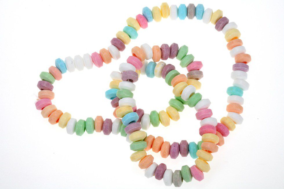 The ultimate party favor candy: The candy necklace. Stylish and edible, its every kids dream....until they start getting ants in their bed because they refuse to take it off...