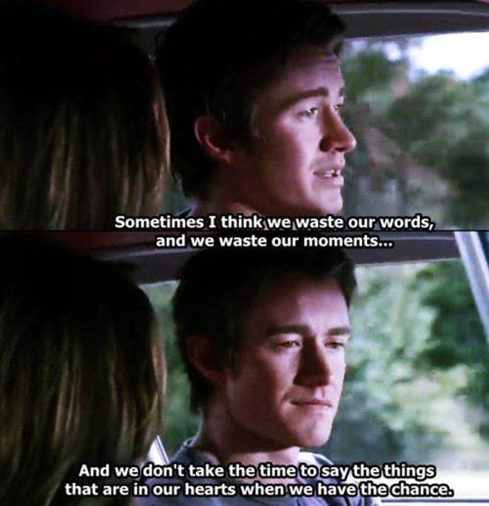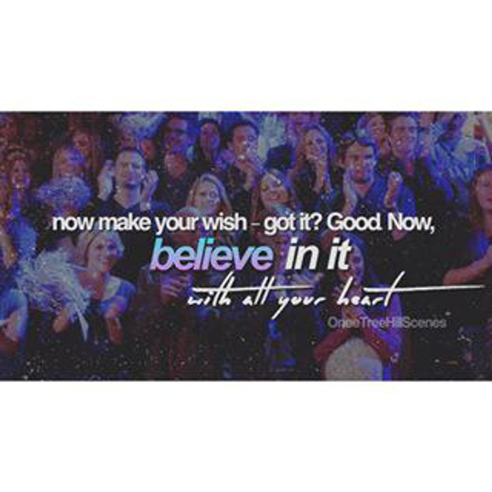 23. "We spend so much time wanting, pursuing, wishing. But ambition is good, chasing things with integrity is good, dreaming. If you had a friend you knew you’d never see again, what would you say? If you could do one last thing for someone you love, what would it be? Say it. Do it. Don’t wait. Nothing lasts forever. Make a wish and place it in your heart. Anything you want, everything you want. Do you have it? Good. Now believe it can come true. You never know where the next miracle’s going to come from, the next memory, the next smile, the next wish come true. But if you believe that it’s right around the corner, you open your heart and mind to the possibility of it, to the certainty of it, you just might get the thing you’re wishing for. The world is full of magic. You just have to believe in it. So make your wish. Do you have it? Good. Now believe in it with all your heart." --"OTH" cast (Series Finale)