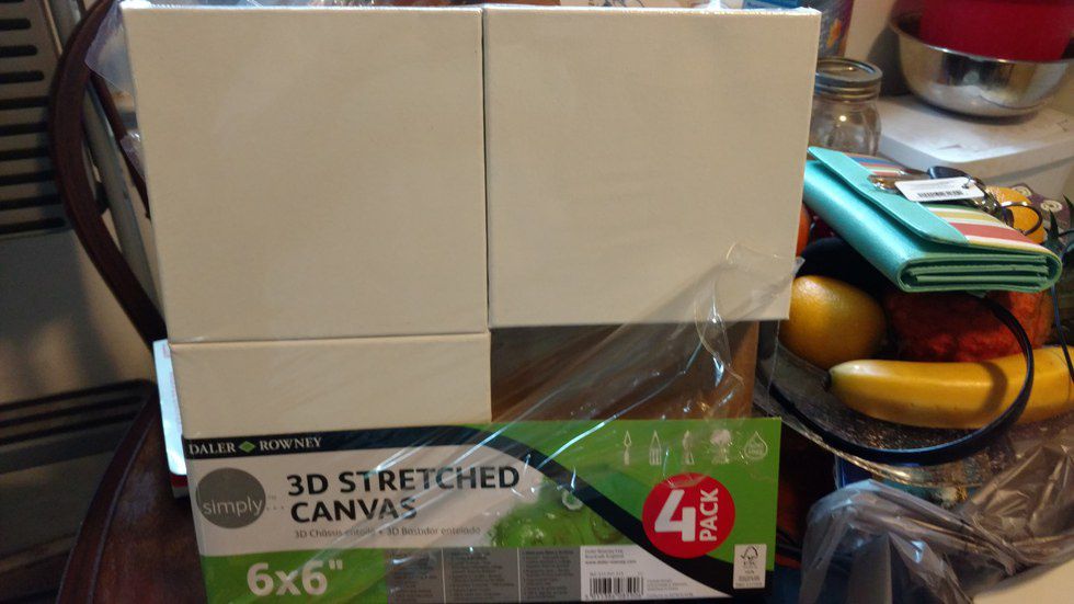 First, I opened up the package and took photos just so you could see the size of the canvas. This is similar to the size I saw on Pinterest (obviously not like the paper above, but on other users' boards). In fact, some of them were even smaller. Honestly, I did not want to buy larger canvas because I was not willing to spend the money on four large canvases when I knew my success rate to begin with was extremely low (realism at its finest).