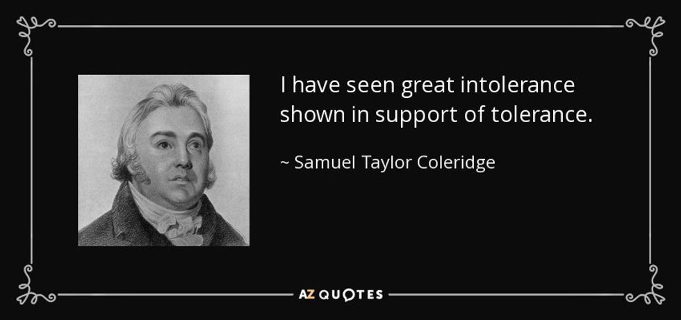 It's no doubt that our culture today is an argumentative culture. Every opinion is scrutinized, much of the time before people are even finished explaining theirs. That's a problem in and of itself, but that's not the main issue. The issue here is that this generation doesn't understand the difference between "tolerance" and "acceptance". Merriam-Webster defines the verb "tolerate" as " to allow (something that is bad, unpleasant, etc.) to exist, happen, or be done", and "acceptance" as "the act of accepting something or someone". I can tolerate a certain behavior, but that doesn't mean that I accept it or endorse it, and nor do I have to. All too often, people who don't agree with the majority are labeled as "hateful bigots" and the like. The best example of this is same-sex marriage. One can tolerate it- it most definitely exists, and the government allows it. However, they don't have to accept it. Just because someone doesn't agree with same-sex marriage doesn't mean they're hateful. It doesn't mean they hate gay people, or that they're judging them, or that they think of gay people as less than others. They're allowed to have that opinion, and that's okay. Just because someone doesn't agree with you doesn't mean they're hateful or a bigot. We need to stop taking everything as a personal attack or insult. In my own experience, the most intolerant people were actually the ones claiming to be the most tolerant.