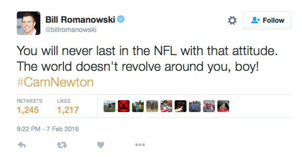 Besides the utter disrespect displayed in this tweet, those who know little about African American history might not understand the weight held by the word boy in this tweet. Back when white men would refer to black men as "boy," it was meant to demean and diminish them. They used the word to deny the manhood of black men, to further take away any respect they had garnered for themselves. The fact that in 2016 a white man would dare refer to a grown black man as "boy" is so eye-opening about the times we live in. Not only is it extremely racist but so indicative of the fact that in over sixty years, we have yet to truly progress as a culture. The irony of their reactions is that, following a loss to the New Orleans Saints in Super Bowl 44, Peyton Manning stormed off the field without even shaking hands with the other quarterback or any of his opponents. His actions were described as a display of how much he wanted to win the game, not a sign of disrespect of poor sportsmanship. Can you spot the difference?