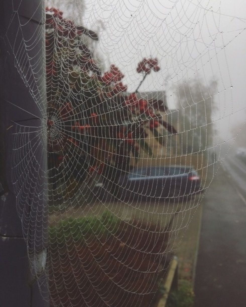 "a fine, filmy substance consisting of cobwebs spun by small spiders, which is seen especially in autumn."