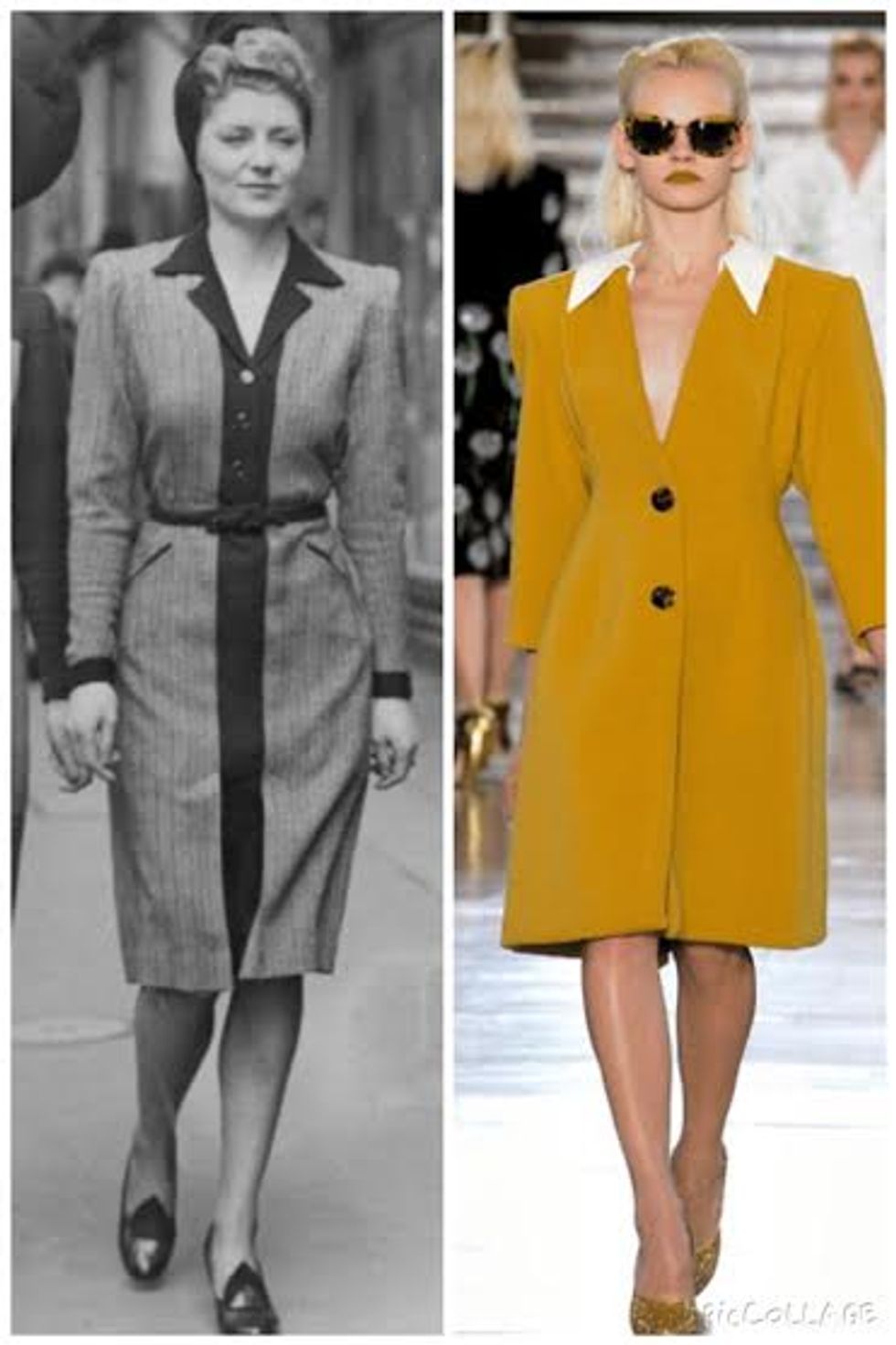 Squared shoulders, narrow hips, and button up dresses were basically what the 40's were all about. The clothing was designed to give women the perfect hour-glass figure, which still stands true in a lot of the clothing you see today.