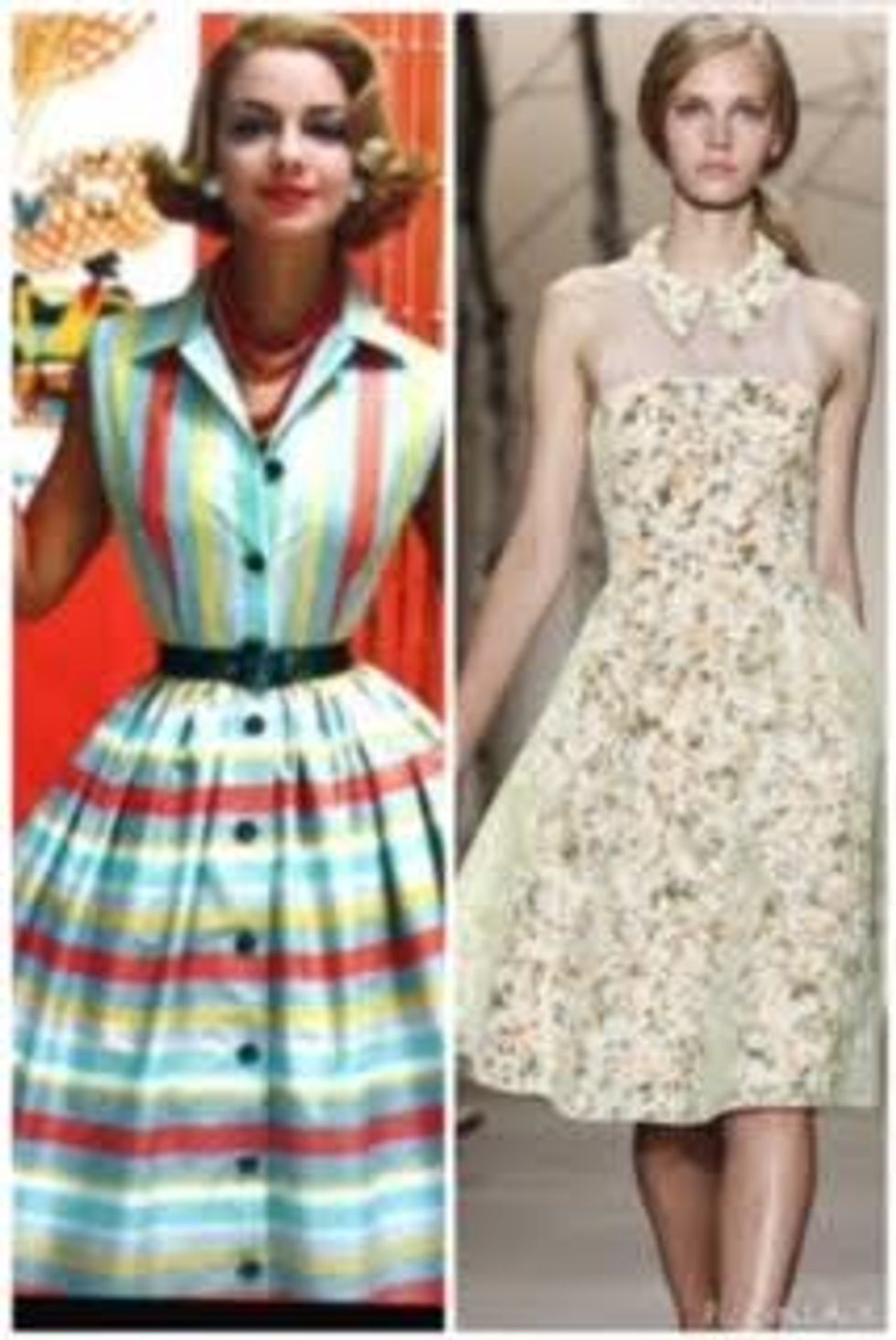 The 50's was all about excessive fabric, as well as fabulous collars and necklines. This is the decade to thank for those very feminine dresses we see today with the cinched-in waistlines and full skirts, as well as the peter-pan collars on our dresses and blouses.