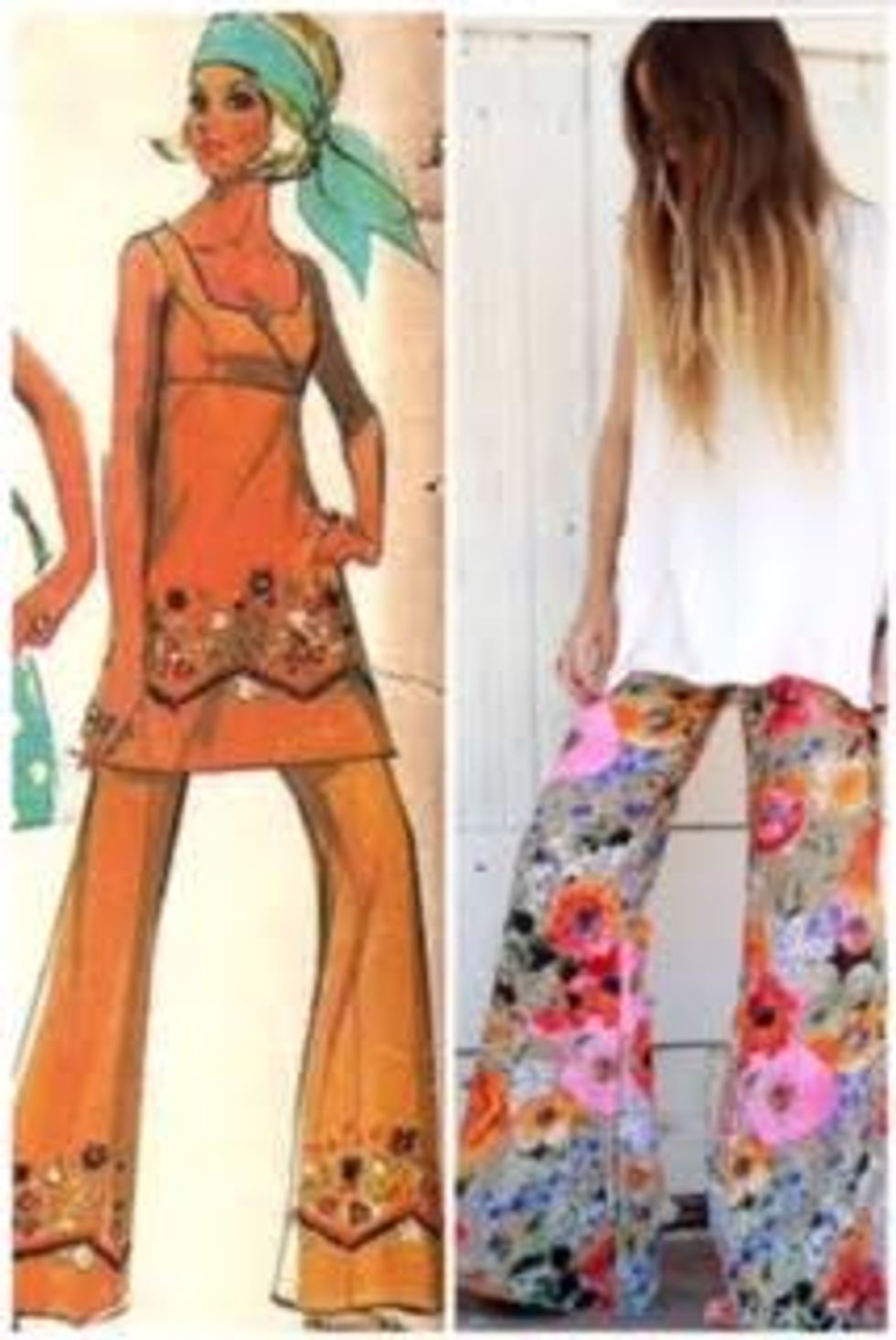 One word to describe this decade in a nut shell is Flower Power. Music festivals such as Coachella are where you'll see many people wearing "hippie" and "flower child" outfits inspired by this era. Bell-bottom pants and long-sleeved dresses with the wide arms are also a current trend influenced by the 60's.