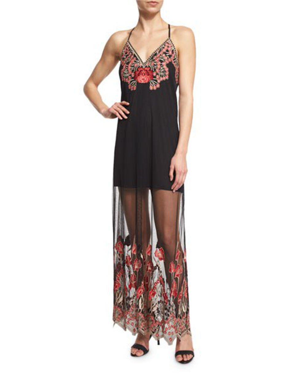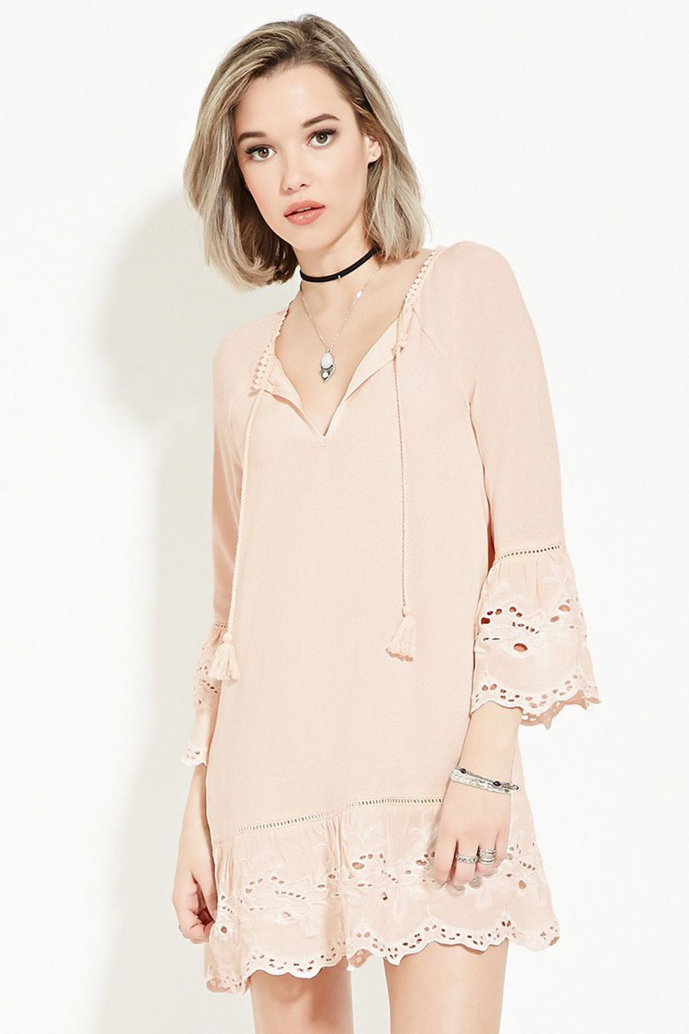 The Alice + Olivia dress ($440) above leaves slightly more up to the imagination with the slip underneath, designed with a more colorful embroidery than the Forever 21 dress ($32.90), which is sheer all the way through, with more structure to the body of the dress.