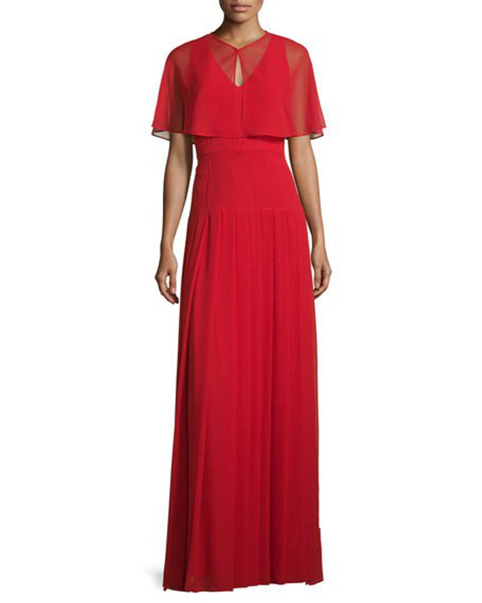 The St. John Collection dress ($1,595) above is a more formal version of the off-the-shoulder midi F21 dress ($22.90). They both sport a gentle flow in the skirt of the dress and a flounce-layered neckline.