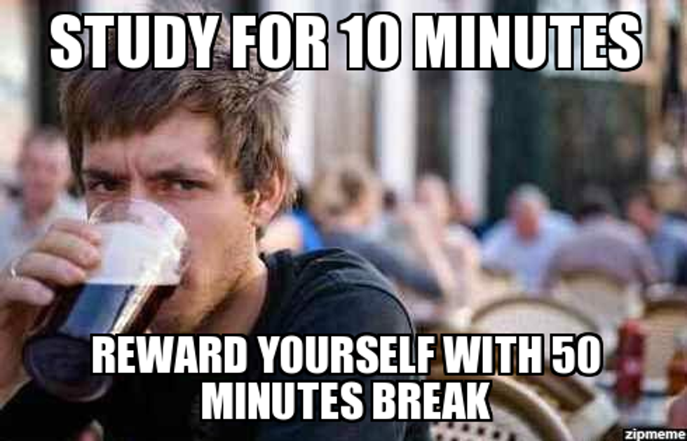 After working/studying for a few hours or completing an assignment, reward yourself! So maybe that'll be some amazing non-dining hall food or even a night out at the movies!