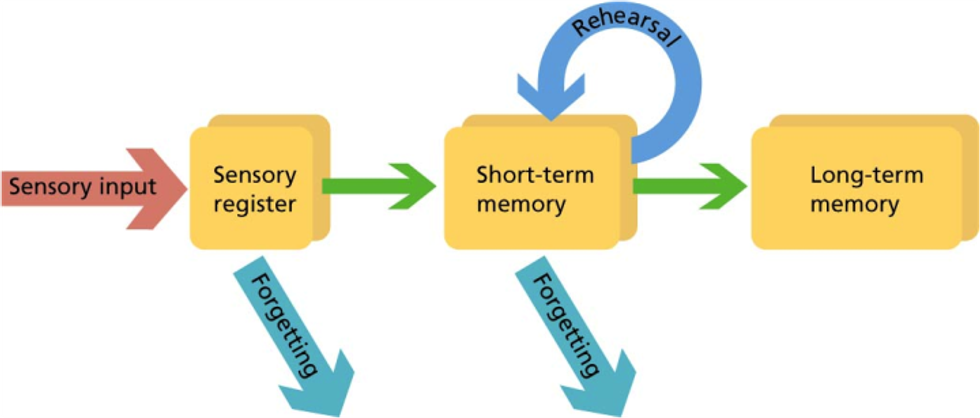 Your short term memory is a lot like the sticky note pad of your brain. It stores really small pieces of information at short amounts of time, typically around 15-30 seconds. You use this a lot during the day to do things like: temporarily memorizing a promo code to enter and purchase concert tickets, making note of a comment you want to make as soon as your friends are done fighting over Bachelorette contestants, or to prepare yourself when you're driving and make a decision to change lanes after a specific car passes you. Short term memory is basically a process, and it is said to occur in the prefrontal cortex of the brain. Short term memory also acts like a filter, deciding what's important to keep and what isn't. Whatever is kept, over time, becomes long term memory. Again, it's a process, and it works kind of similar to how a computer works.