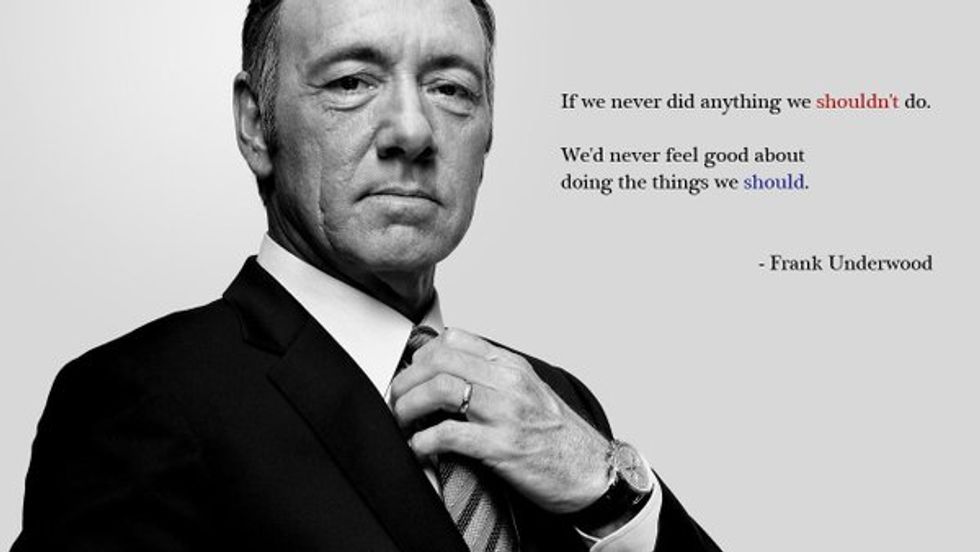 The fourth season of House of Cards is set to release on Netflix on March 4th. Over the past few years, we have ravenously watched Frank and his equally conniving wife Claire rise to the top, a swath of carnage in their wake. Jagged threats, timely deaths and biting words encapsulate the Underwoods’ journey through Congress and up to the presidency. Frank is never one to shy away from a verbal smackdown. So, add a little Frank your life.