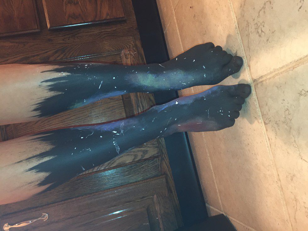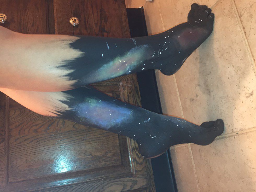 Mix the white cream paint with some water so it will be easier to splatter. Mix enough until you can easily splatter it. I use this method instead of with the water based white because I didn't want it to get too watery and just look like water drops which would just wash it off. Splatter on stars and paint any constellations you want. I used my nails to splatter the paint but you could also use a toothbrush or stiff paint brush. When your finished, dance among the stars