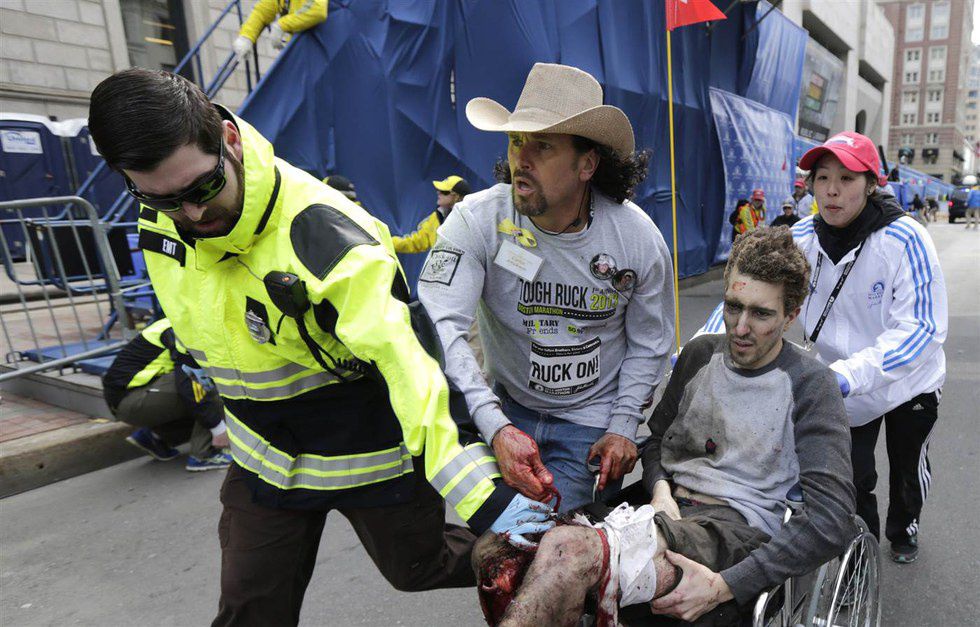Jeff Bauman was completing his first race since the Boston Marathon bombing while helping his friend and hero finish as well. When the bombings happened, Carlos Arredondo put tourniquets on Bauman's legs and helped rush him to safety. He is now recovering from leg surgery and was pushed to the finish line of the road race by Bauman. See the video and story here.