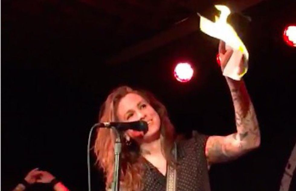 Known badass and generally awesome musician Laura Jane Grace rocked out in Durham, NC this past weekend. Grace is the front woman of the thrash metal band "Against Me!" who began their US and Canada summer tour in Durham, NC in one of the most politically turbulent times in recent history with the passing of HB 2, or House Bill 2, which bans transgender individuals from using the bathroom that matches their gender. What makes this statement so bold is that Grace herself is a lesbian transgender woman.