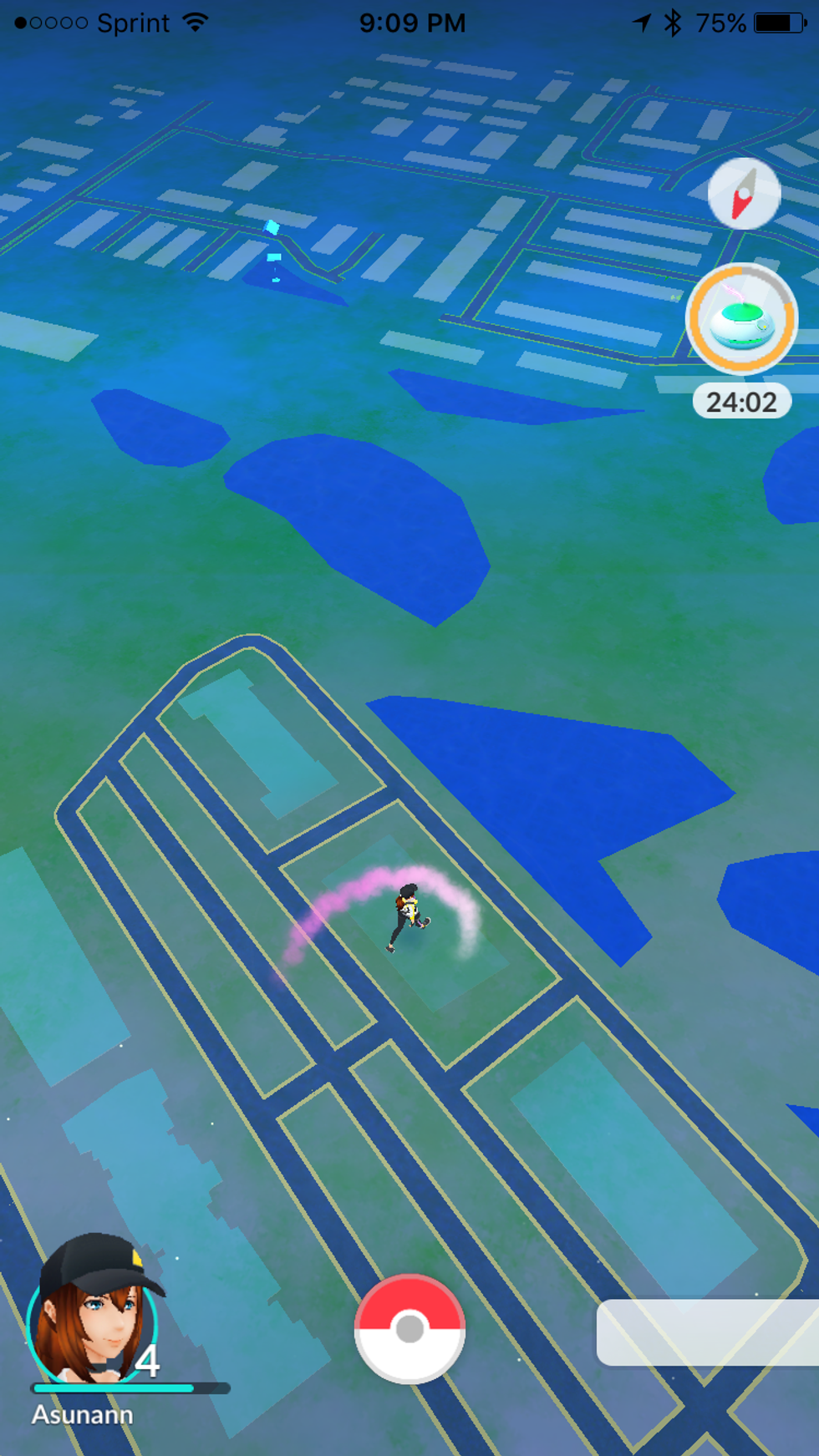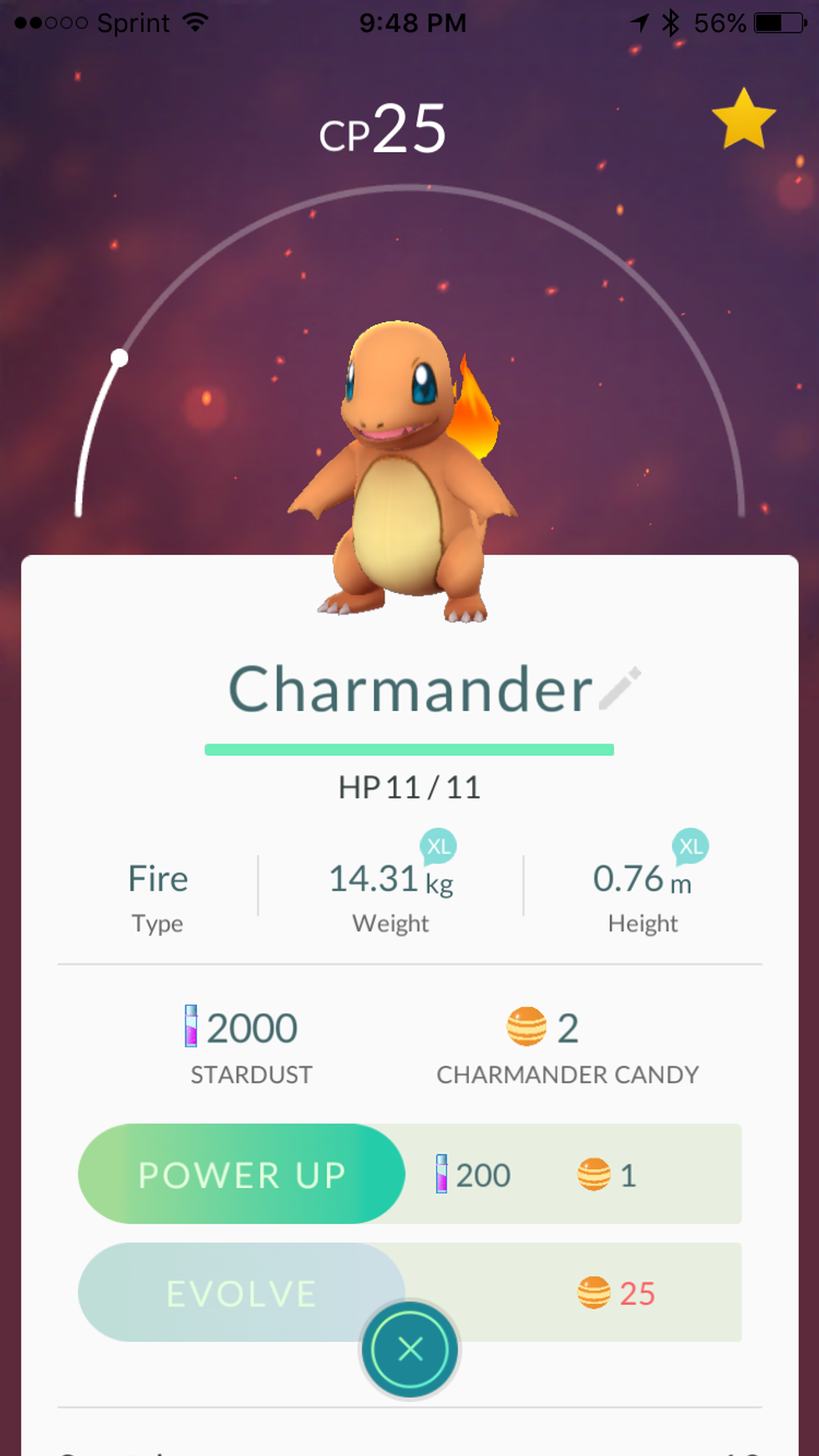 So just what is this game about? Well its not how you originally played Pokémon, it’s a lot more interactive. For starters, you play in real time and with your location rather then say walking from Pallet town in the game through grass to find Pokémon you haven’t caught yet. You start the game by making your character decked out in true trainer gear, you then are directed by Professor Willow on why you’re there and you then are released onto the blue screen (which will become your map you see from now on) to catch your starter Pokémon. You have the option of the classics like Charmander, who I chose, Bulbasaur, and Squirtle, all of which pay homage to the games that started them all. Fun secret, if you don’t chose the three they offer and continuously deny them as you start to walk around, you’ll get the option of everybody’s favorite, Pikachu. From here you’re basically released on your own to wander around your city and where ever else you want to go hunting down Pokémon, pokéstops (places you can get items like pokéballs, and lucky eggs every 5 minutes), and rival gyms (only after you reach level 5 though). Just like the previous games you can evolve and power up your Pokémon to take on other Pokémon in gym battles, which is how you’ll be the very best, pun intended.