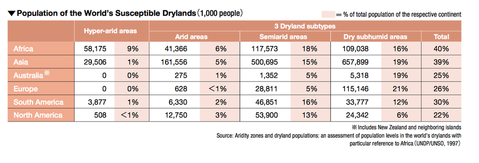 These factors are often the result of population growth and poverty, as both are linked to pressure and dependance on the land to provide ample vegetation. Africa has 40 percent of the earth’s drylands, which is the highest percentage of any continent.