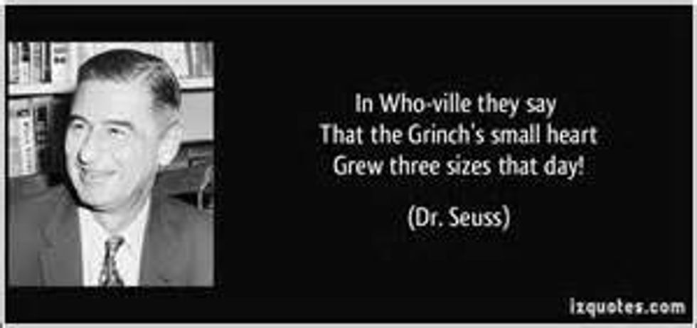 "Don't forget the Grinch. I know he's mean and hairy and smelly. His hands might be cold and clammy, but I think he's actually kinda... sweet."
