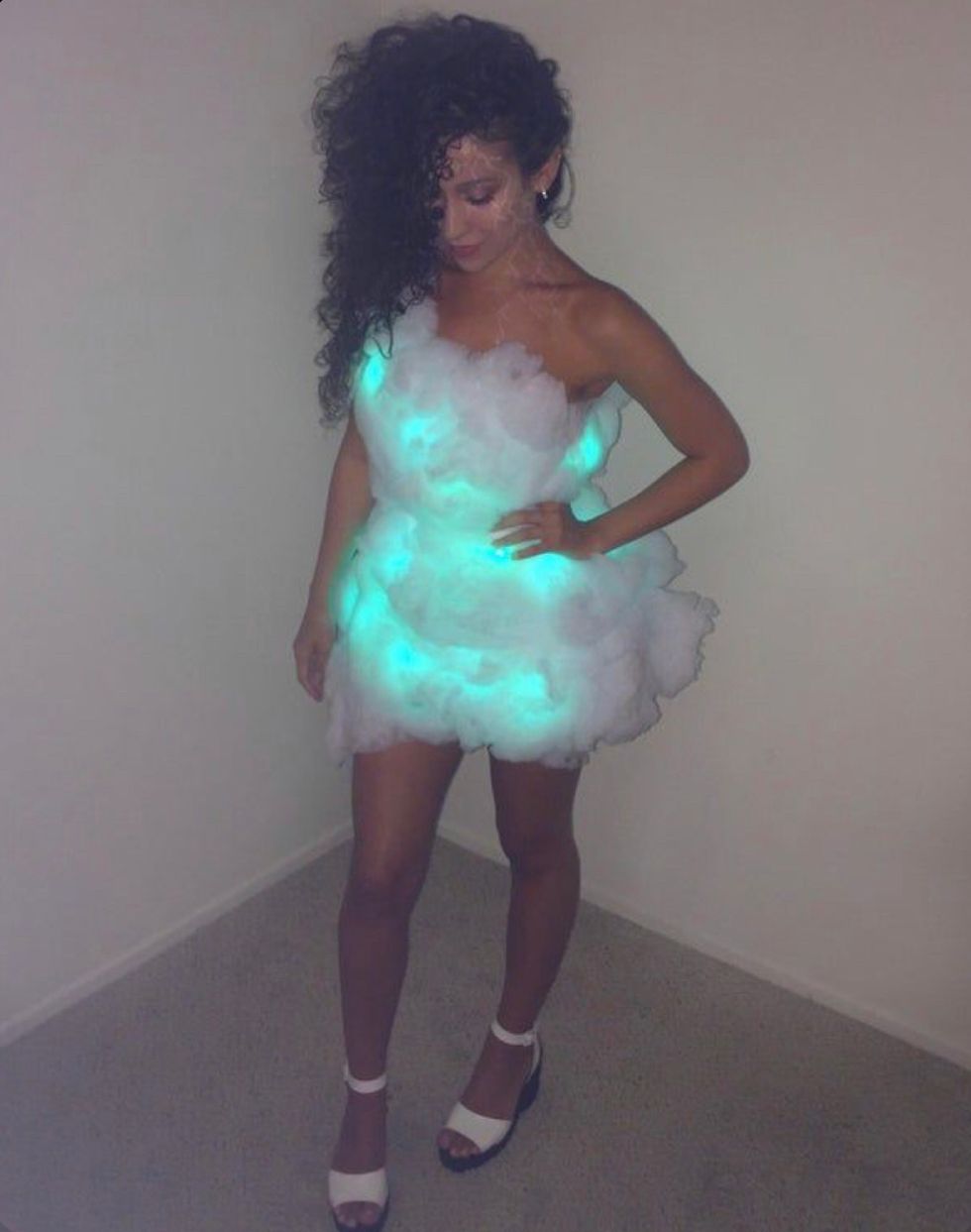 If you're feeling extra crafty, get some cheap, battery-powered string lights and thread them through the "cloud" for a lightning look.