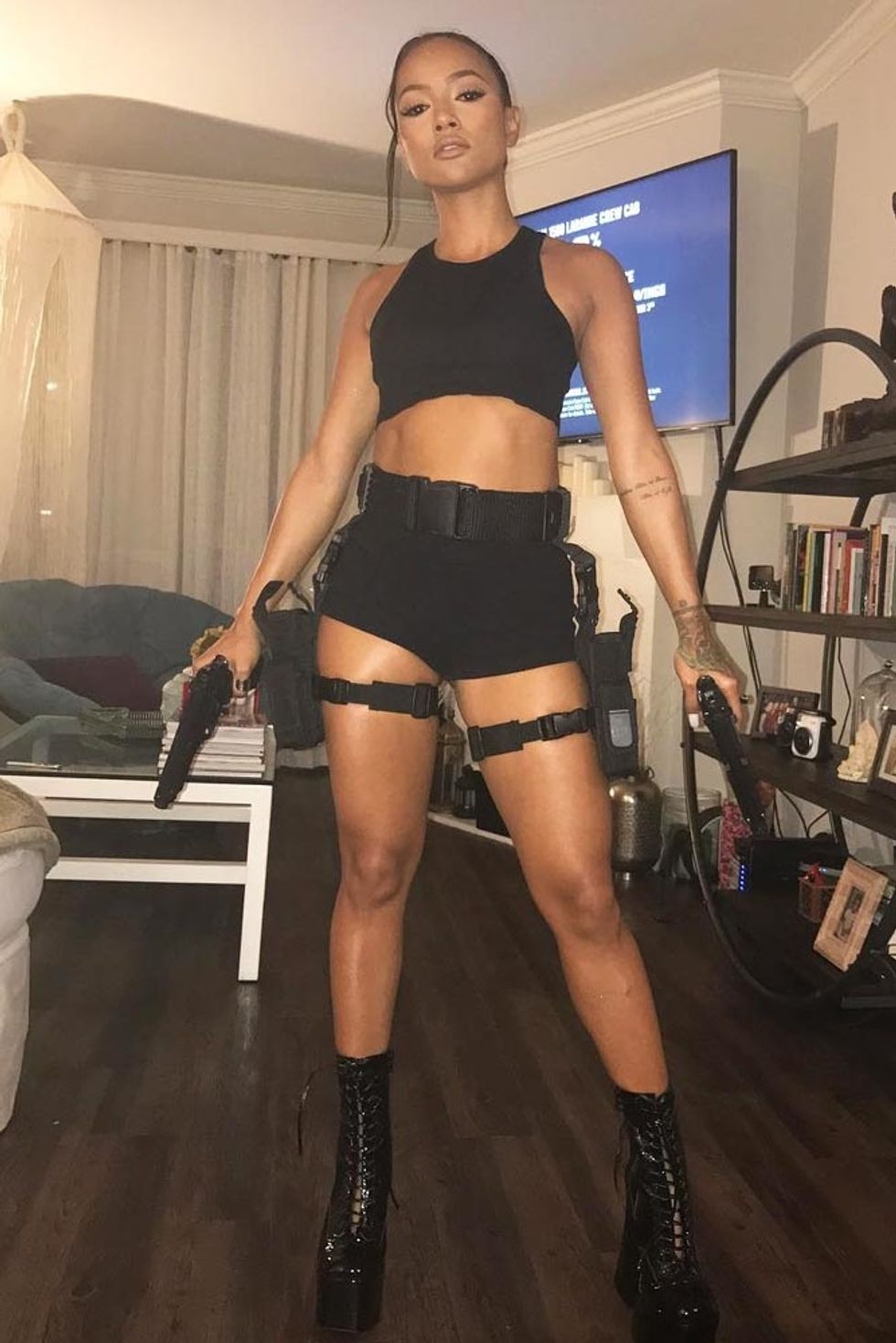 Simply dress in all-black for this sleek look. Combat boots, thick belts, and any sort of spy gear looking items you can think of will elevate this, and adding a black mask simply makes sense.