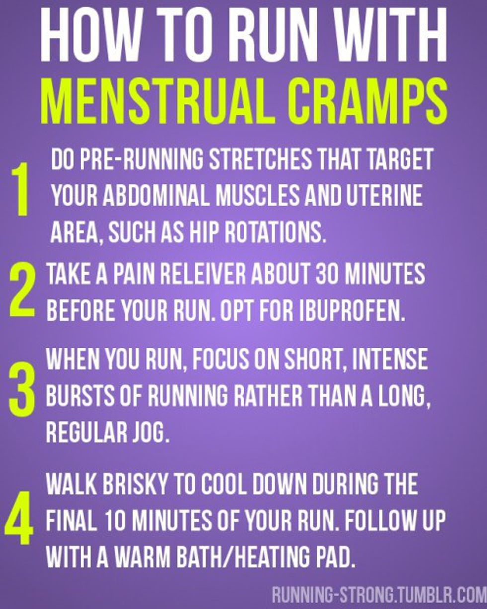 If you are at work or basically somewhere where you can't get to your Midol, deep breathing is great. It gives you some else to focus on other than cramps. Plus some period symptoms overlap with symptoms of a heart attack or the early stages of labor. If pregnant women practice deep breathing as they go into labor, it's a good idea for you to do the same.