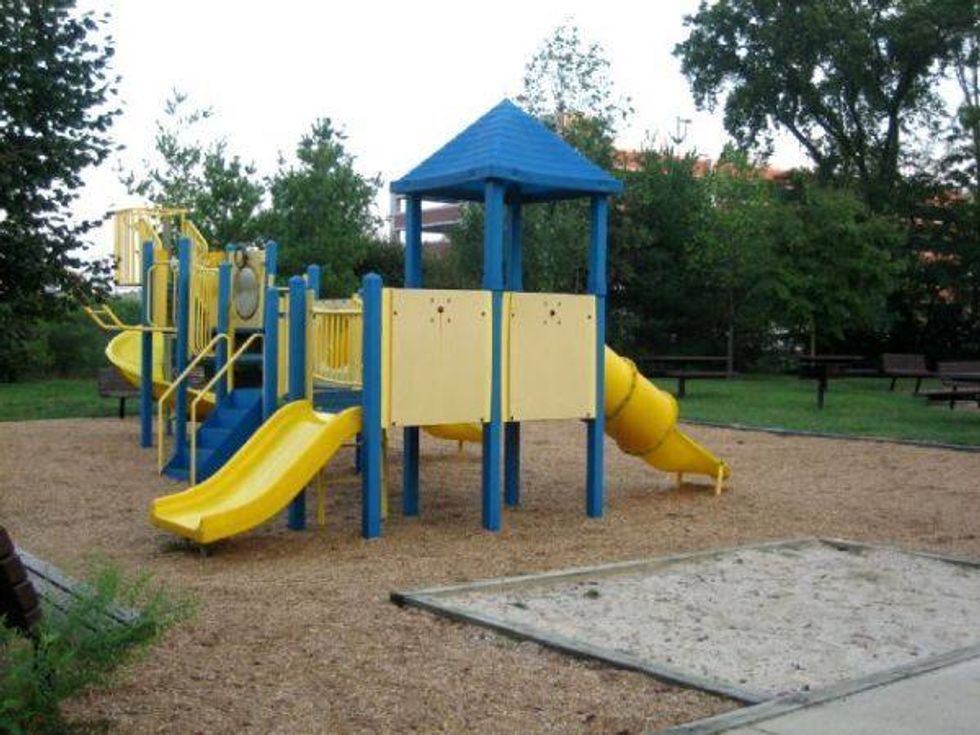 While it has a huge playground and doesn't seem like a place for college students, there is a field right next to the playground to play sports or just to relax after a long day of class.