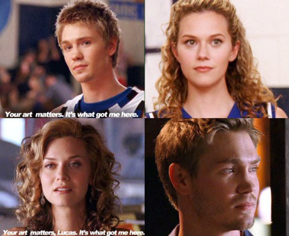 Oh One Tree Hill, OTH some might call it. Really, such a darn classic. And the best thing about it- the turbulent relationship that is Lucas and Peyton. Don't give me that "Naley is the best" garbage, because you are wrong. Lucas and Peyton were really the only thing that kept me sitting in my bed for several hours in the middle of last June. Everyone seemed to have already gone through this dumb show, and I told them all I would never fall into the deep trap that is OTH, but I did. And it was great. Because of-you guessed it!- Lucas and Peyton.