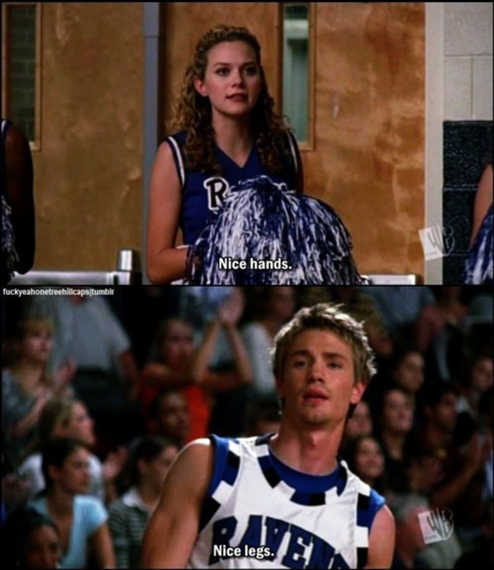 Ahh yes the first time of there meeting when Peyton is oh so cold. But Lucas don't care. There perfectly compatible minds finally meet and are much more interesting than silly season one Haley. Boooo Haley