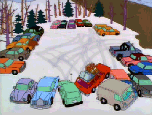If it's raining or snowing, you're in for a great time. Everyone seems to forget how to park. Plus, the little spots that were left are now filled with piles of snow or potholes. If your parking lot is on a slant, expect car pinball.